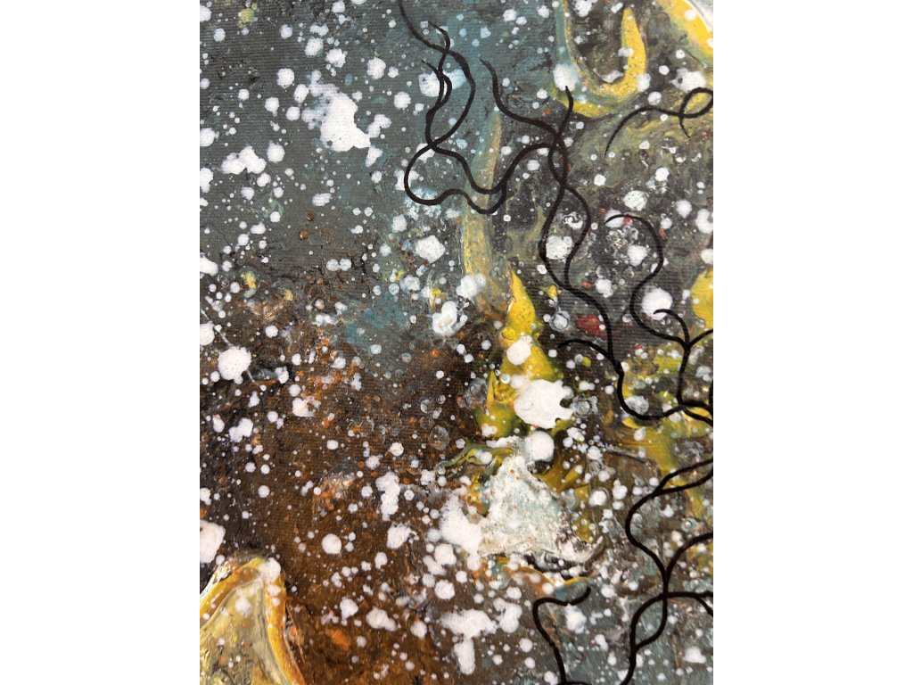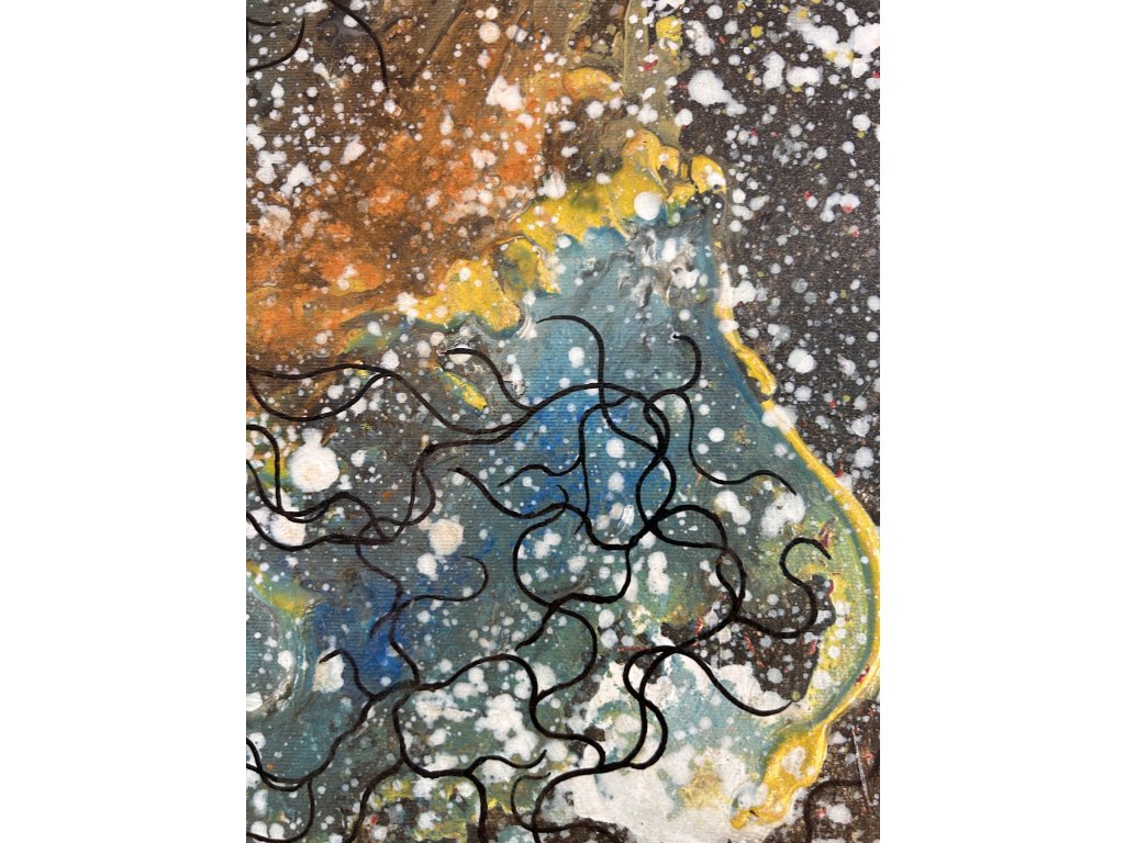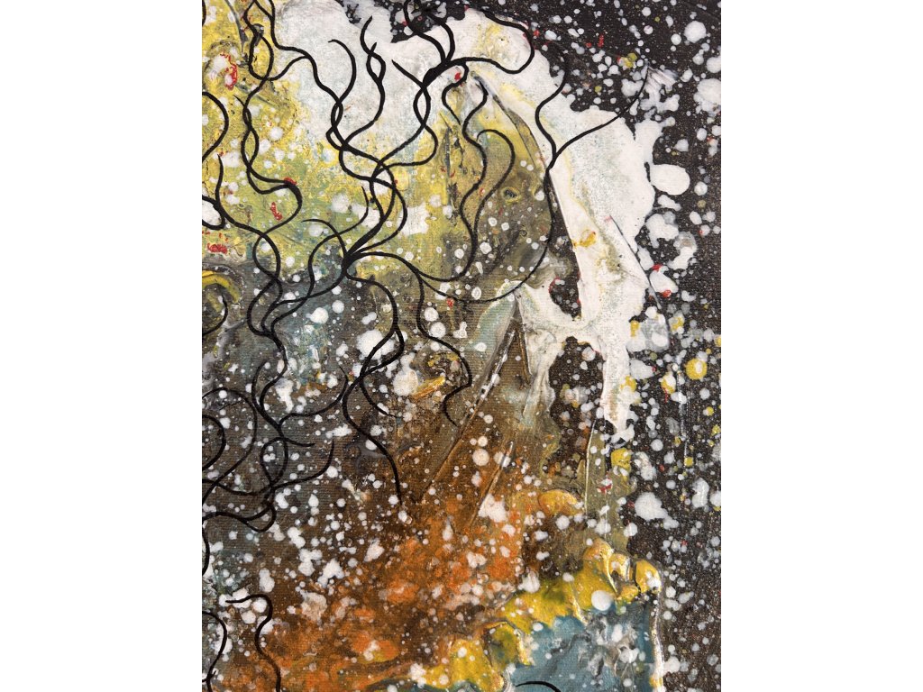 Tento obraz jsem malovala s vidinou se ničeho nebát, nemyslet na to, že by se nějaké barvy k sobě nehodily, chtěla jsem vytvořit chaos, směs barev, které bych k sobě normálně nedala. Vše, co maluji, myšlenky, se kterými obrazy maluji, se pojí s životem každého z nás.